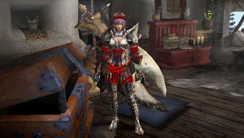 またまた新防具作りました。武器よりも防具作るほうが好きなんで(笑) この防具は結構万能なんでいろんな武器に使えそうです。え? ナルガの防具? 何それ、おいしいの? 冗談です(笑) この防具は火に弱いのでナルガはテオとかナナ用にでもしようかな